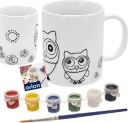 Създайте своя собствена оригинална чаша с мотив на сова! Тази порцеланова чаша с обем 330 ml е предназначена за доизработване с приложените акрилни бои и четка. Идеална за ежедневна консумация на чай, какао или мляко, има удобно ухо и е подходяща за съдомиялна машина и микровълнова. Креативен комплект за деца от 3 години и възрастни, лесно фиксиране на цветовете във фурна и дълъг живот благодарение на качествения порцелан.