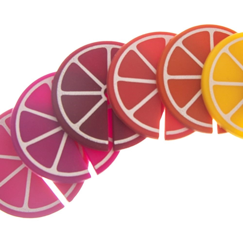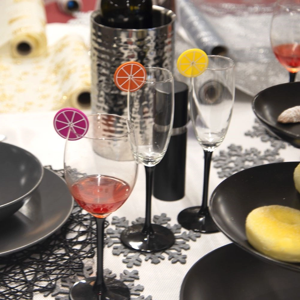 Маркирайте чашите бързо и стилно. Силиконовите маркери във формата на цитрусови кръгчета лесно се прикрепят към столчето на чашата или към горния ръб на чашата. Те са цветово различими, така че всеки лесно запомня своя цвят и не се стига до объркване на напитките.