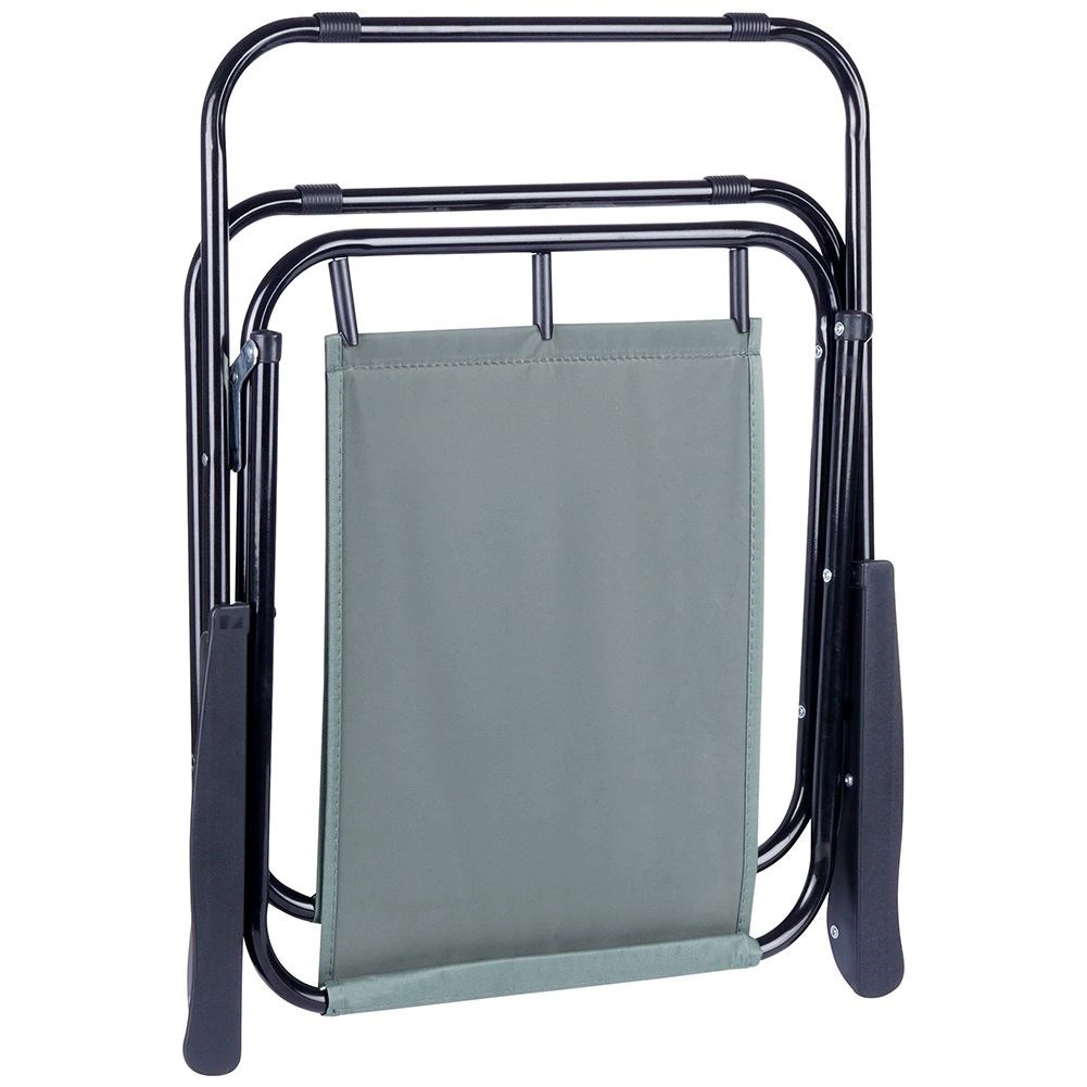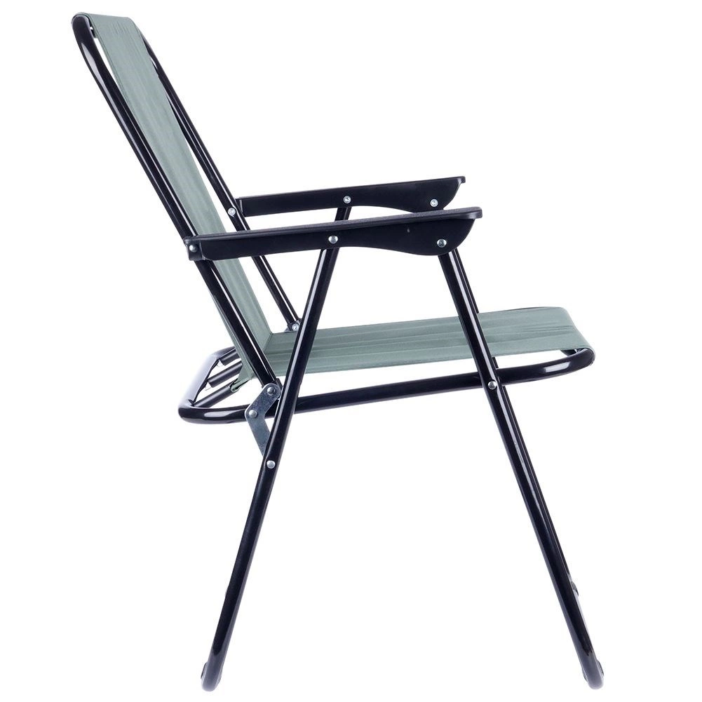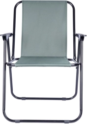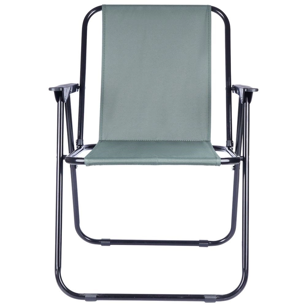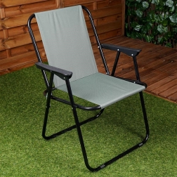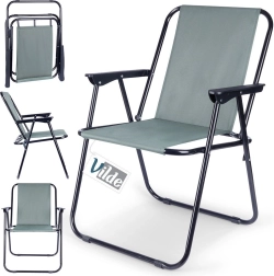 Практичен и лек сгъваем туристически стол с размери 54 × 44,5 × 72,5 cm, идеален за плаж, градина, къмпинг и риболов. Има здрава метална конструкция, издръжлива подплатена полиестерна тапицерия в сив цвят и удобни подлакътници. Лесно се разгъва и сгъва, стабилен е и издържа до 110 kg.