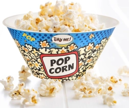 Ярка графика с надписи POP CORN и TRY ME! придава забавление и стил на сервирането – перфектно за домашно кино и тематични празненства.