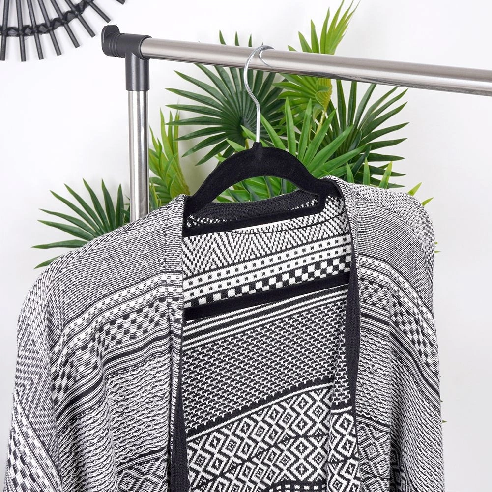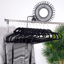 Закачалките имат прорези на раменете и долна лента, така че без проблем ще окачите тениски, сака, рокли с тънки презрамки, поли, панталони и шалове. Кадифето е щадящо към тъканите и помага да се предотвратят плъзгане, намачкване и отпечатъци.