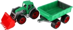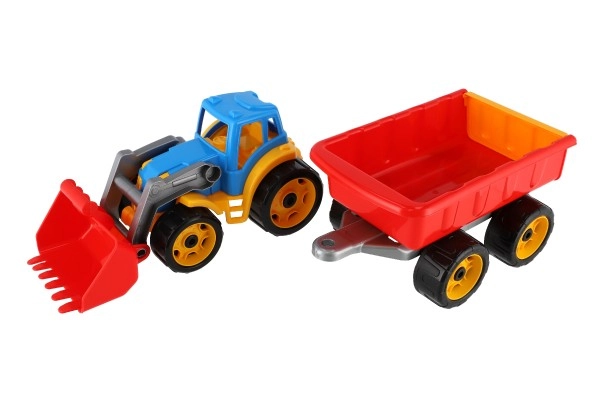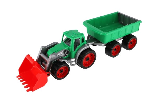 Този трактор с товарач и ремарке е изработен от здрава пластмаса, която издържа на детски игри и е устойчива на повреди.