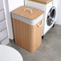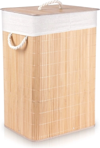 Поддържайте реда със стил. Тази бежова бамбукова кошница за пране комбинира естествена визия с практични детайли, които ще оцени всяко домакинство. Благодарение на двете отделения лесно разделяте светло и тъмно пране, а сваляемият капак помага да се запази свежестта в помещението.