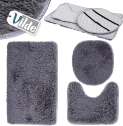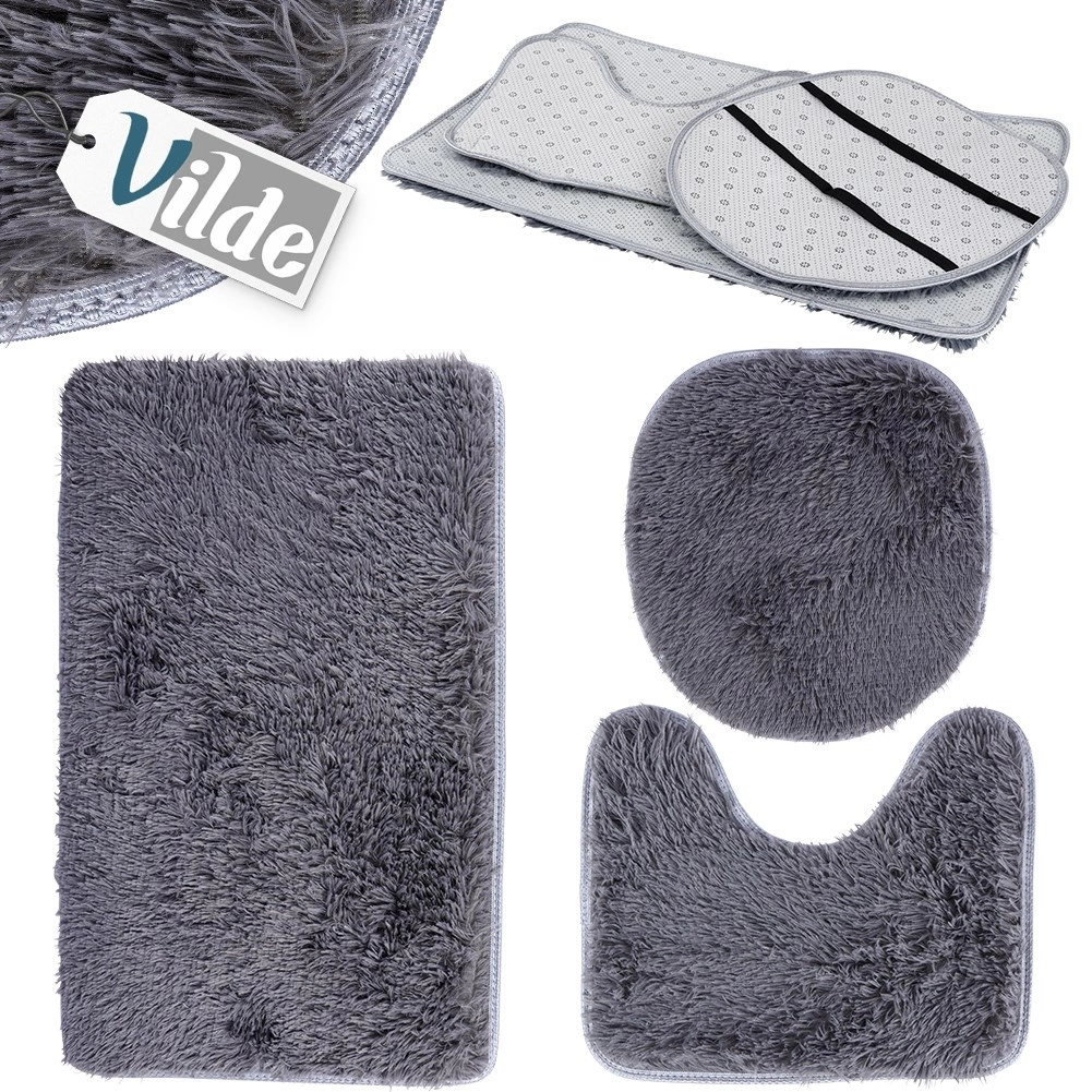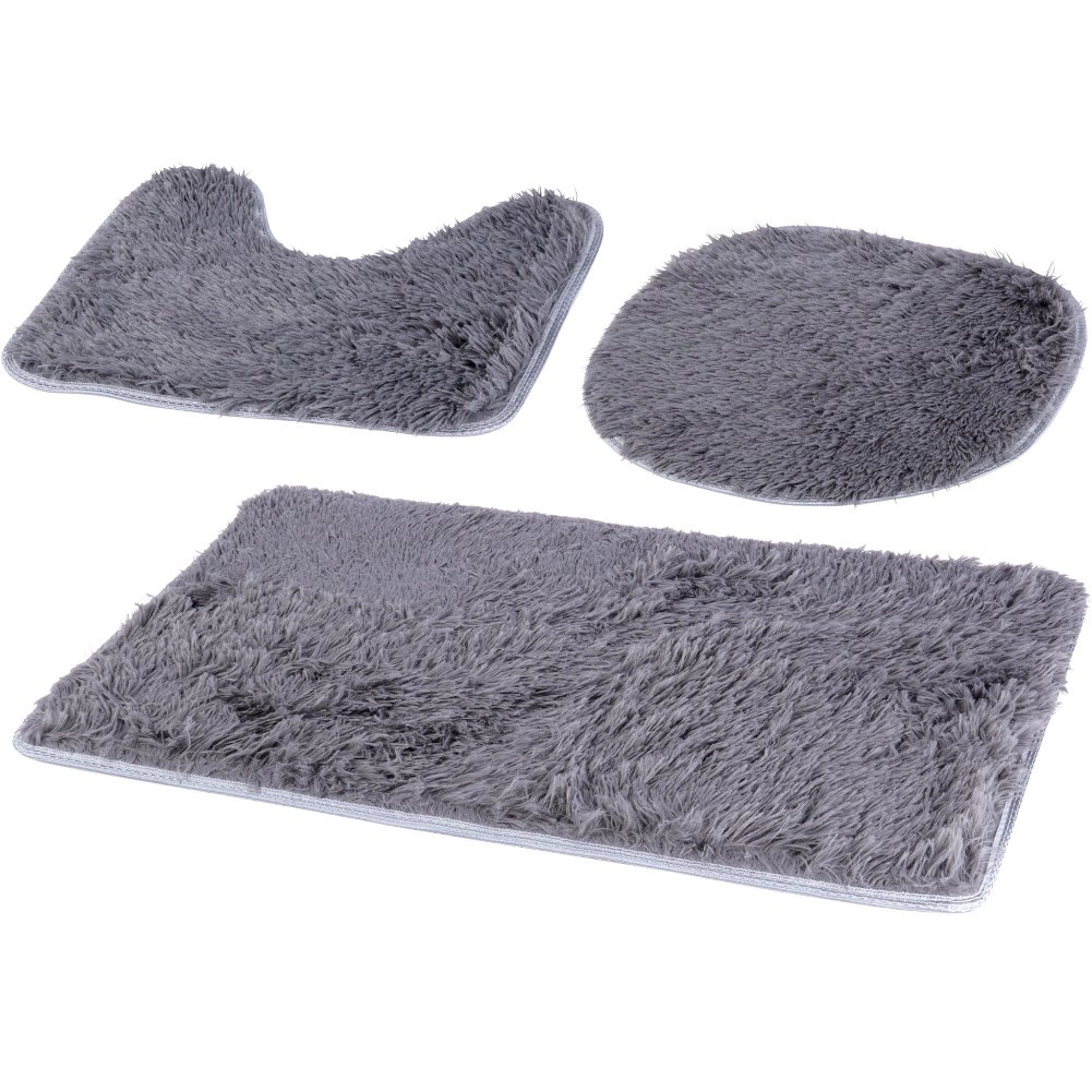 Стилен комплект от три постелки за баня в елегантно сиво за безопасност и комфорт всеки ден. Включва правоъгълна постелка, U-образна постелка за тоалетна и калъф за седалка на тоалетна. Меките, гъсти влакна са приятни на допир, незалепващата долна страна осигурява стабилност, а универсалният дизайн пасва както на модерни, така и на класически интериори.