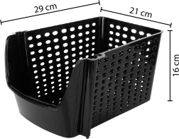 Благодарение на неутралния черен цвят лесно се комбинира с интериора на дома. Отлично служи не само за храни, но и за препарати за почистване, или офис консумативи. При закупуване на повече бройки можете да ги стаквате и така да спестите ценно място.