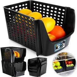 Подходящ за плодове, зеленчуци, както и за препарати или офис консумативи. Няколко кошници могат стабилно да се стакват и да пестят място.