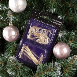 Улеснете украсяването на елхата с комплекта от метални златни кукички, които надеждно държат както дребни декорации, така и по-големи топки. Двата размера в комплекта осигуряват универсална употреба и гаранция, че всяка украса ще стои точно там, където е нужна.