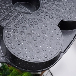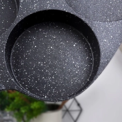 Внесете ежедневен комфорт в кухнята: гранитният тиган BLACK&WOOD с размери 19 × 19 см предлага четири отделни кухини за перфектно кръгли порции. Лесно ще приготвите яйца на очи, закуски тип палачинки и малки палачинки – бързо, равномерно и с минимум мазнина благодарение на нелепнещото покритие.