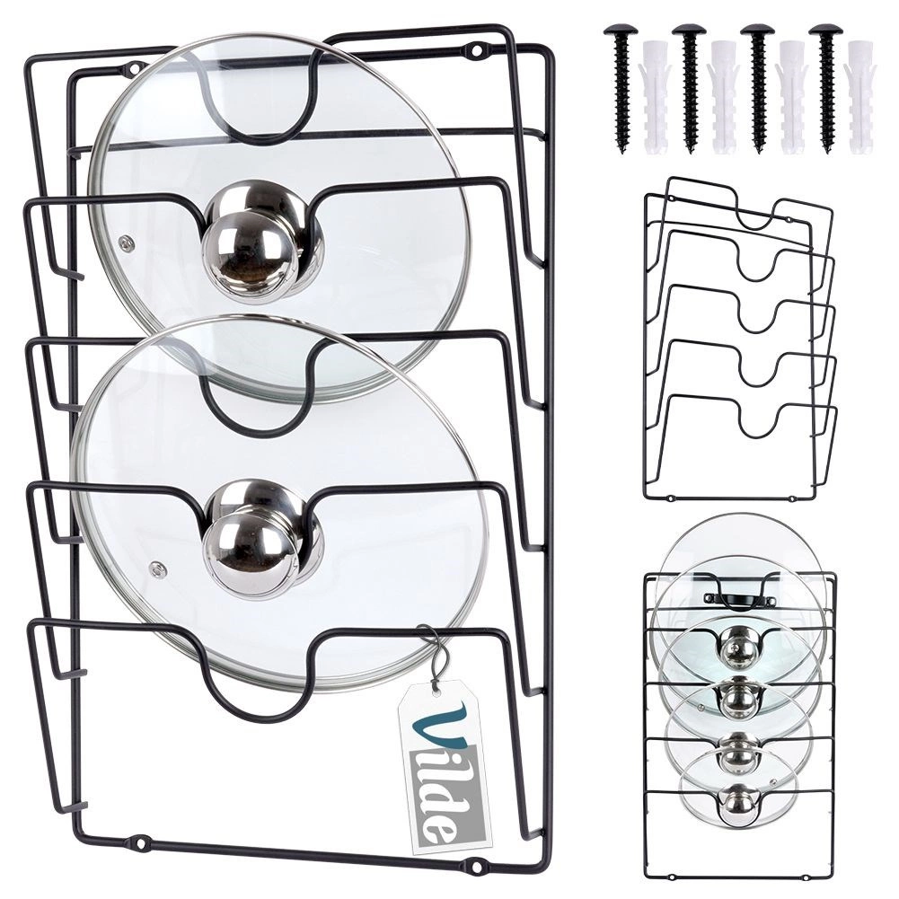 Четири до пет нива за безопасно съхранение на капаци с различни размери – мигновен преглед и ред в кухнята.