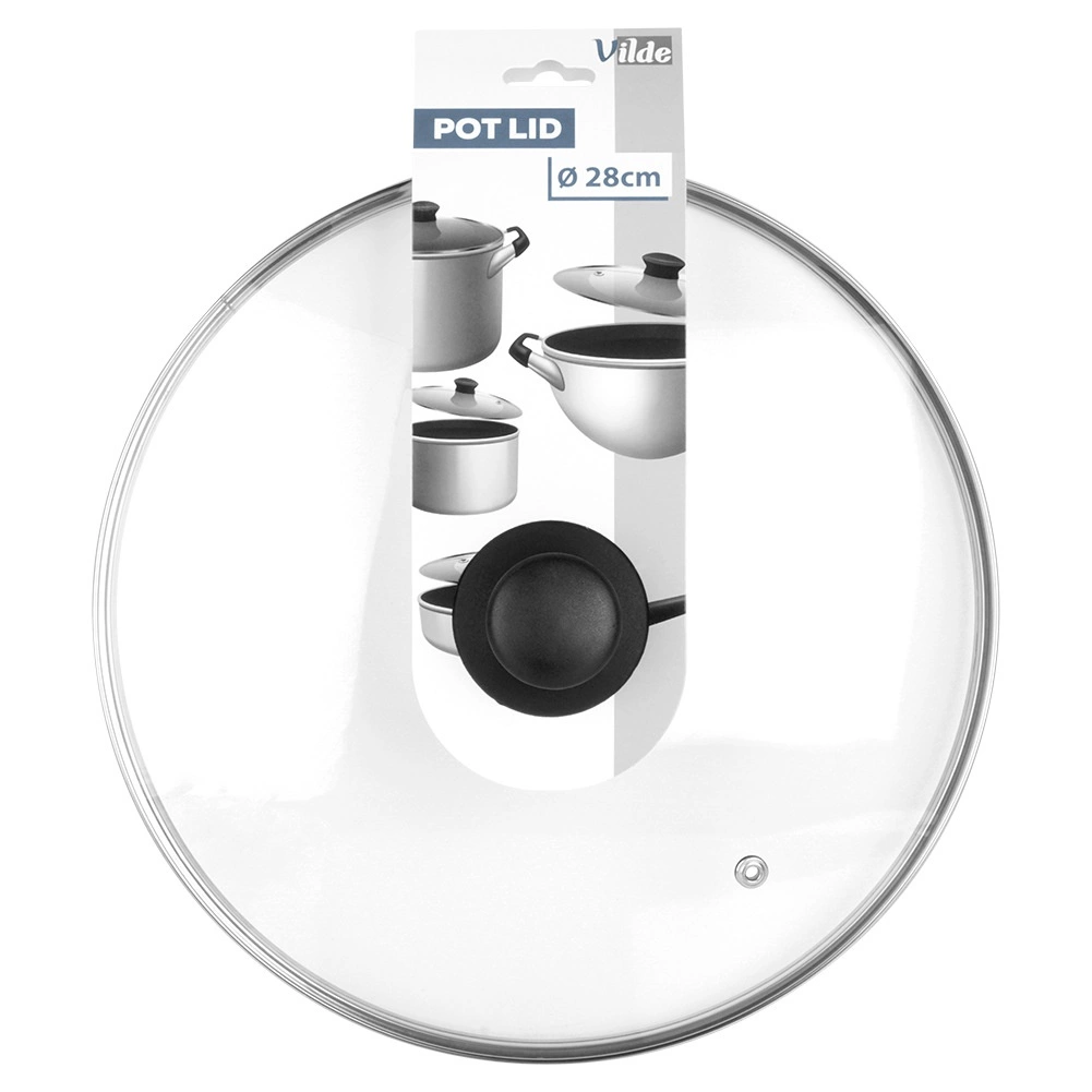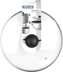 Практичният капак от термоустойчиво, прозрачно стъкло е идеален за тенджери, тигани и касероли с диаметър 28 см. Здравият неръждаем кант увеличава издръжливостта, а ергономичното копче от устойчив материал улеснява боравенето. Благодарение на прозрачността имате пълен контрол над готвенето без излишни топлинни загуби.