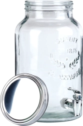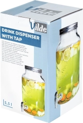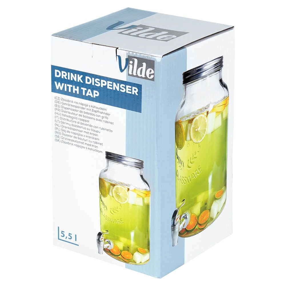 Практичният винтов капак предпазва съдържанието от насекоми, широкото гърло осигурява лесно пълнене и поставяне на ледени кубчета и плодове. Издръжливото дебело стъкло с релефен надпис подчертава атрактивния вид. Диспенсърът е предназначен за студени и охладени напитки (не е подходящ за горещи напитки).