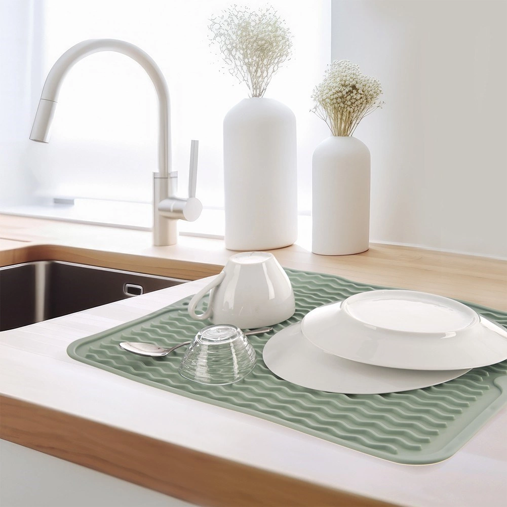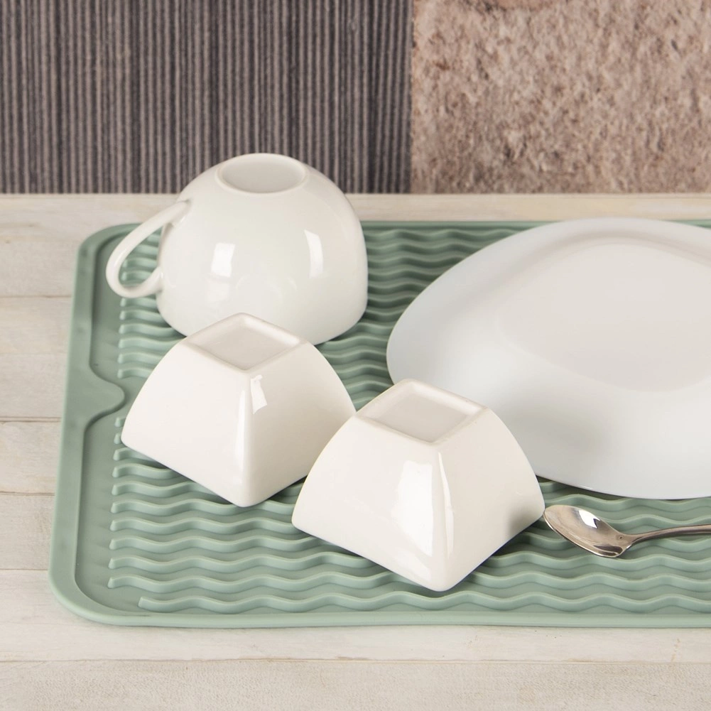Мекият силикон защитава работната повърхност и предотвратява плъзгането на съдовете. Подложката е издръжлива, лесна за измиване и подходяща за съдомиялна.