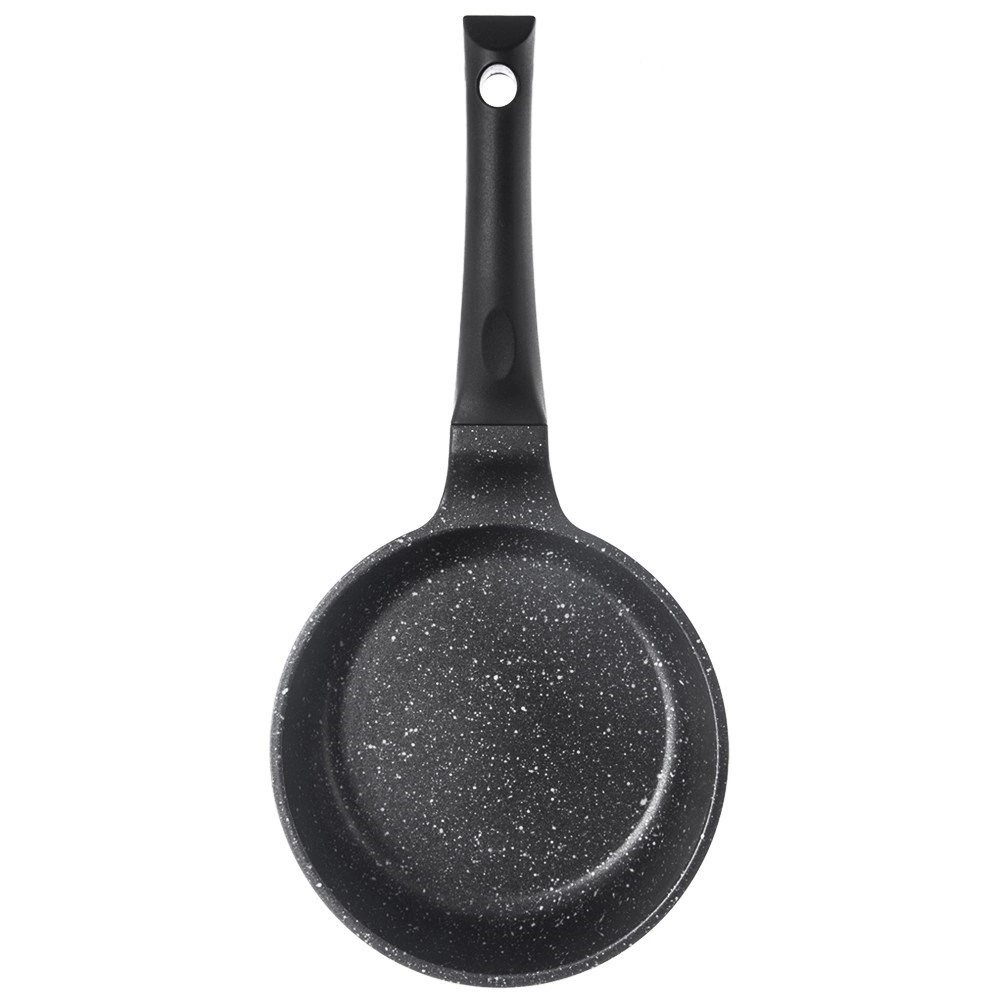 Този издръжлив тиган от алуминиев отливък комбинира бързо разпределение на топлината с висококачествено нелепливо гранитено покритие Pfluon Granit без PFOA и PTFE. Перфектен за пържене на яйца, месо, зеленчуци и малки палачинки – идеален размер за бърза закуска или порция за един.