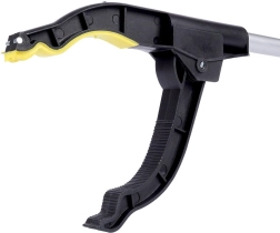Комбинацията от лек алуминиев корпус и издръжливи пластмасови части осигурява ниско тегло и дълъг живот. Текстурирани и гумени челюсти надеждно хващат предмети до приблизителна ширина 8 см, докато пистолетната дръжка с чувствителен спусък дава увереност и контрол над захвата.