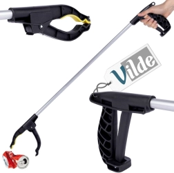 Лек и издръжлив събирач на отпадъци 76 см улеснява почистването у дома и навън. Благодарение на дългия обхват, стабилния и сигурен захват и гумени/релефни челюсти безопасно събира кенчета, листа и дребни предмети без навеждане. Алуминиевата конструкция е здрава и в същото време лека, дръжката с пистолетен спусък е ергономична. Оригинален продукт Vilde, произведен по европейски стандарти.
