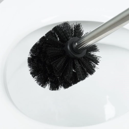Поддържайте тоалетната безупречно чиста с резервната WC четка, която съчетава устойчиви пластмасови косъмчета и здрава дръжка от неръждаема стомана. Черните косъмчета по-добре прикриват замърсяванията и улесняват рутинното почистване. Благодарение на универсалните размери пасва на повечето стандартни стойки и държачи.