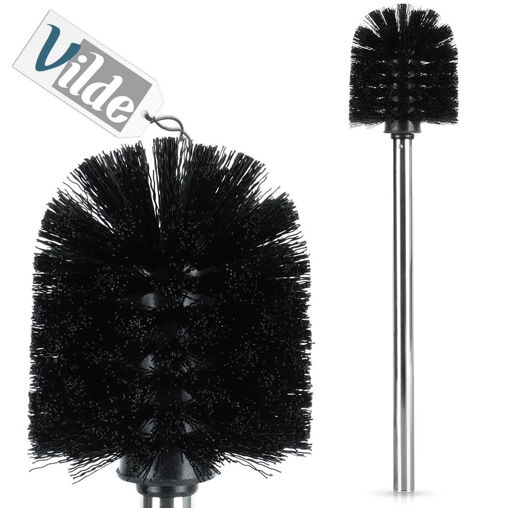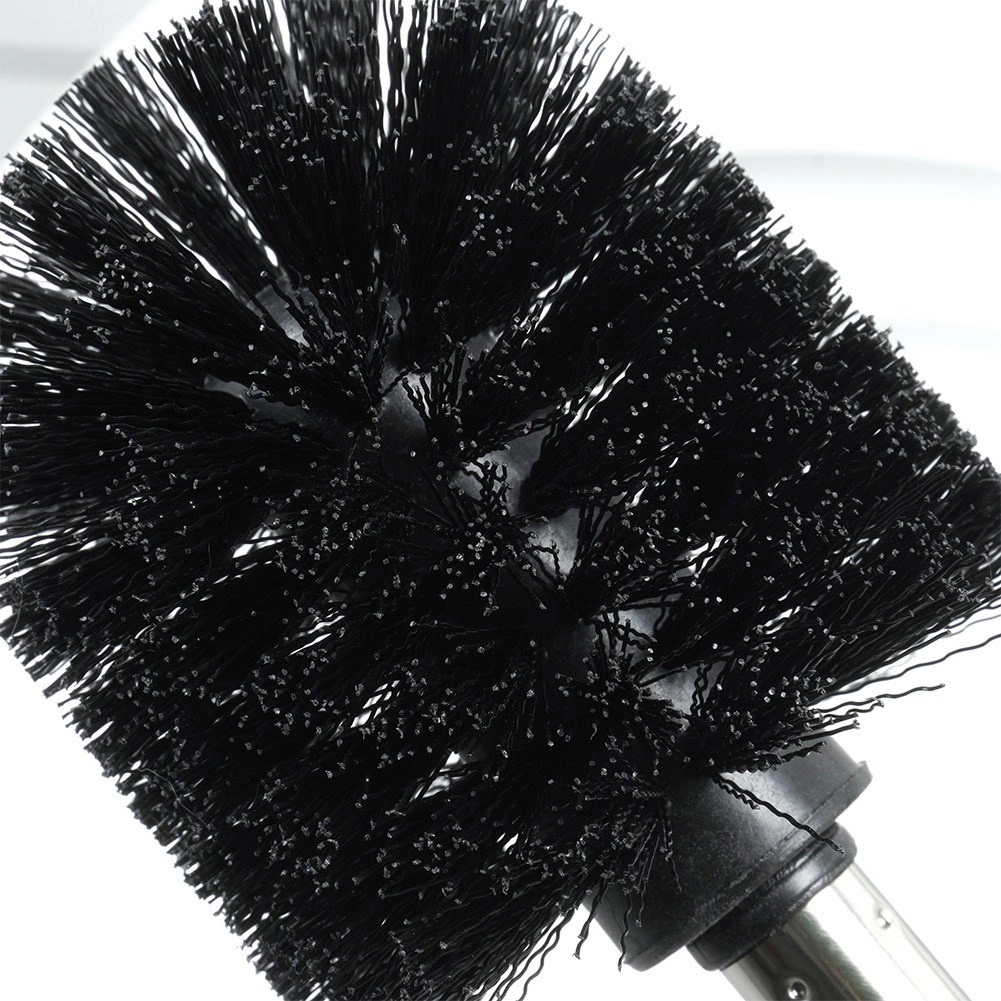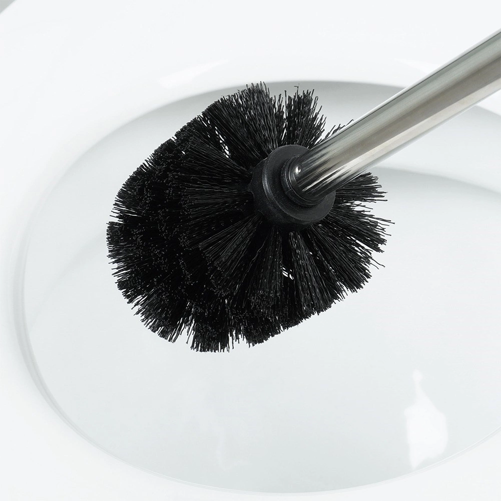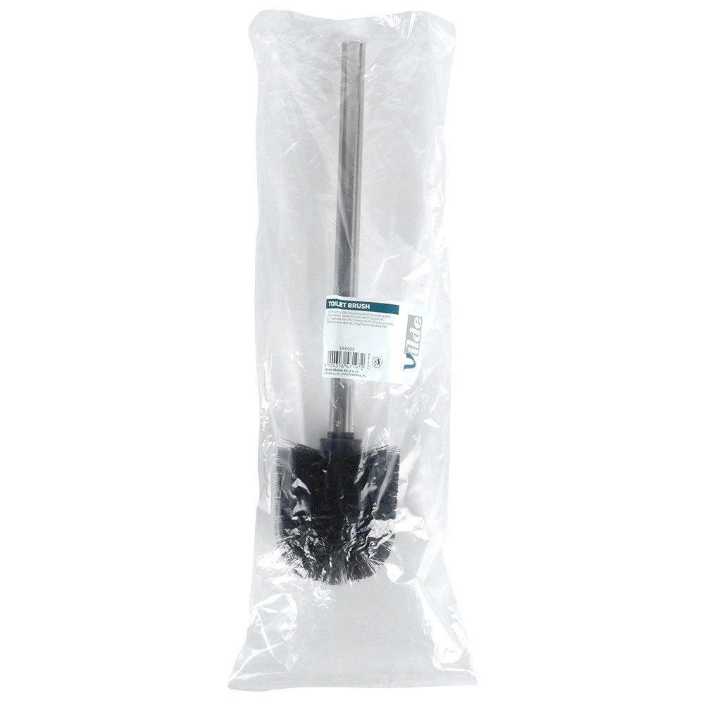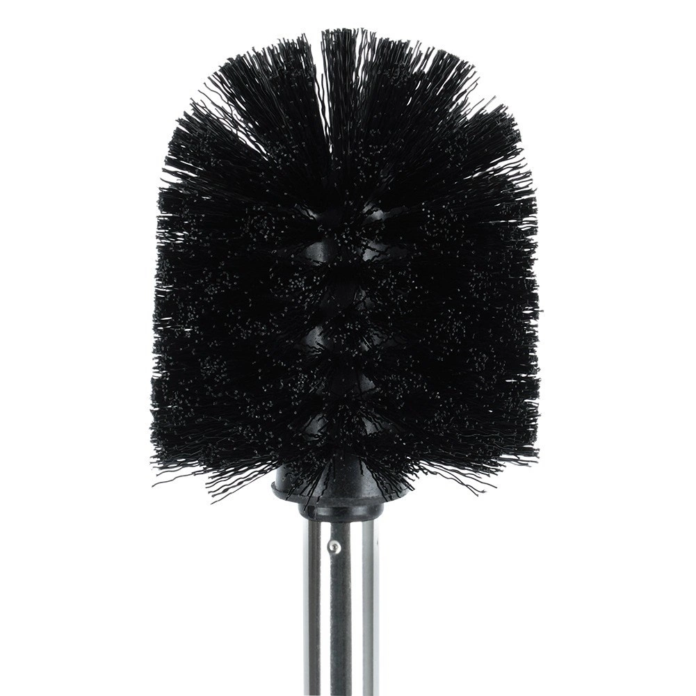 Практична резервна WC четка с черни устойчиви косъмчета и дръжка от неръждаема стомана за ефективно почистване на тоалетната чиния. Дължина 35 см, диаметър на главата 8 см, универсален размер за повечето стойки. Главата се развива за лесна подмяна и хигиенна поддръжка. Подходяща за всяка баня, елегантен черен дизайн.