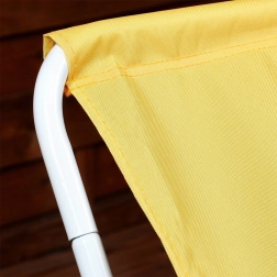 Издръжливата полиестерна тъкан в жълти нюанси е приятна на допир и позволява комфортен релакс на плажа и в градината.