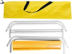 Благодарение на сгъваемата конструкция лесно го сгъвате и разгъвате за миг. Включена е чанта за пренасяне с презрамка за удобно носене; чантата със сгънатото легло е с размер 60 × 18 × 8 cm. Леглото е отличен избор за плаж, тераса, балкон, градина, както и за излети до вода или пикник.