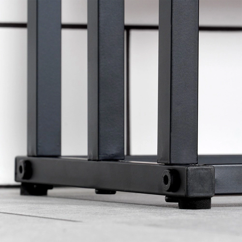 Правоъгълната основа с регулируеми крачета/защита от надраскване държи стойката стабилно на място и предпазва пода.
