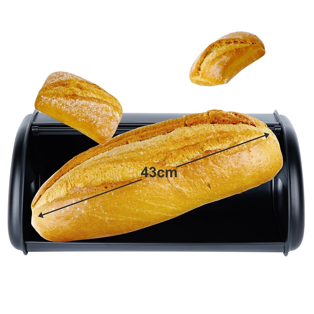 Елегантният черен хлябник от неръждаема стомана ще запази вашите тестени изделия по-дълго свежи. Благодарение на ролковия капак достъпът е бърз и удобен, прахово боядисаният метал осигурява издръжливост, а просторното изпълнение побира хляб, хлебчета и печива с различни размери. Стилен аксесоар, който перфектно пасва на всяка кухня.