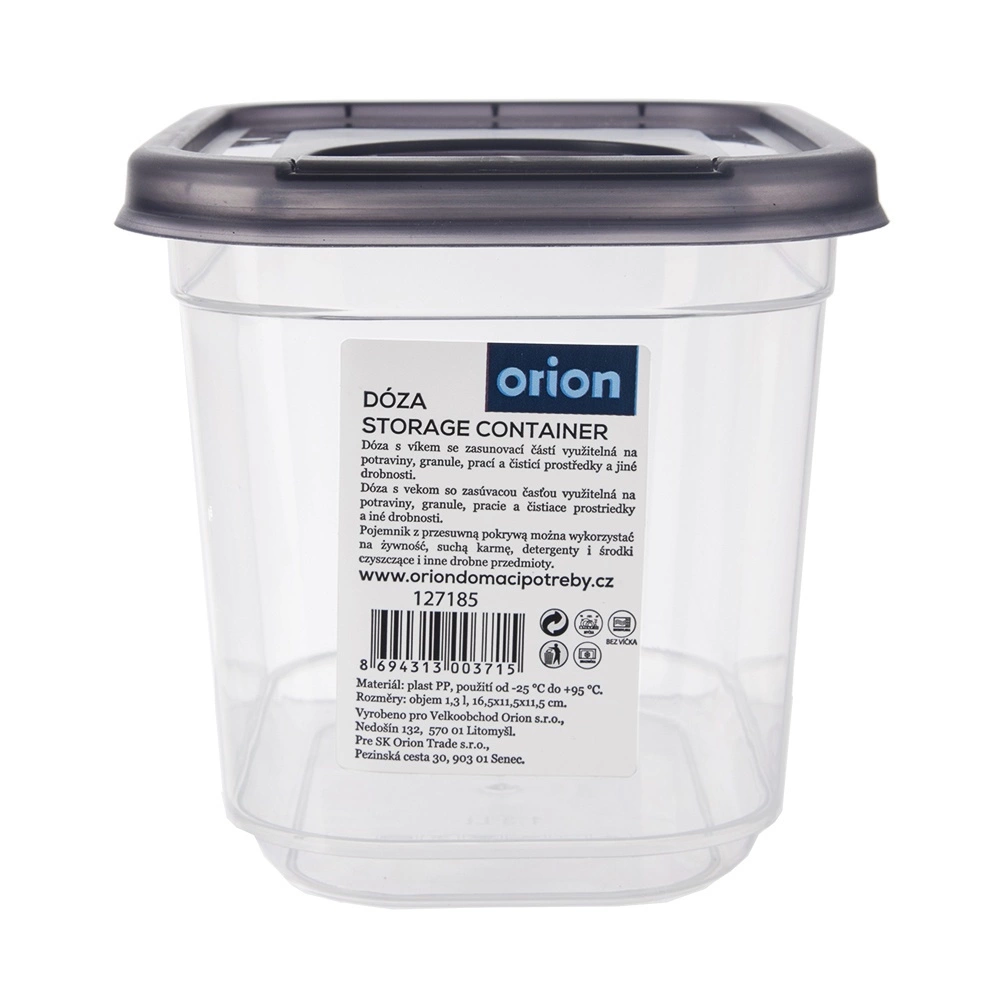 Практичен контейнер за сухи храни с интегриран дозиращ капак с обем 1,3 l поддържа съставките ви по-дълго свежи и подредени. Благодарение на прозрачното тяло винаги имате съдържанието под контрол, докато уплътняващият капак и дозиращият отвор улесняват ежедневната употреба. Изработен от пластмаса без BPA, подходящ за хладилник, фризер и съдомиялна, както и за затопляне в микровълнова фурна без капак.