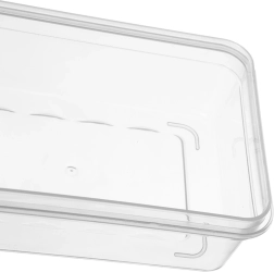 Кутията от издръжлива, лека и прозрачна пластмаса е отлична за ежедневното съхранение и пренасяне на храни. Ниският профил е идеален за резени сирена, шунки или деликатеси, капакът приляга плътно и помага да се запазят свежестта и ароматът.