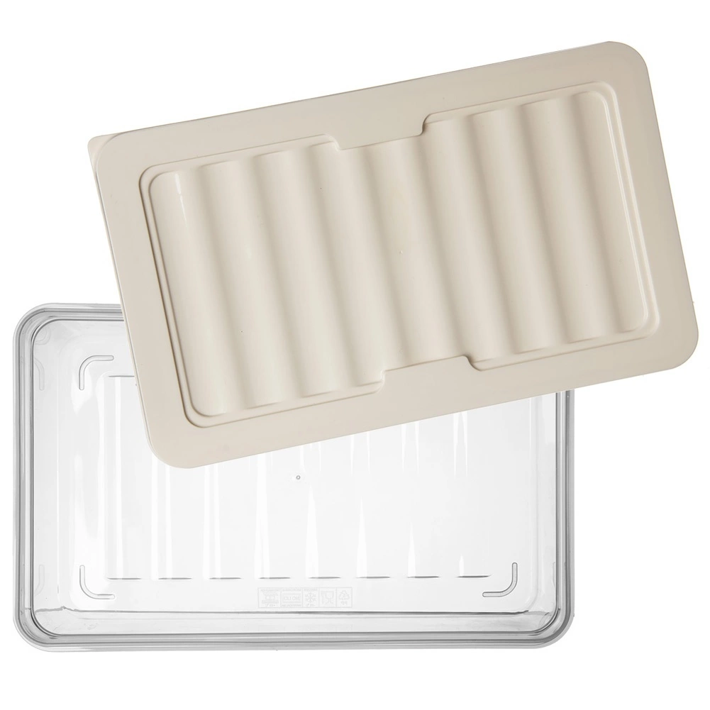 Практичен нисък съд за храни с вместимост 1 литър с уплътняващ капак в кремав цвят. Благодарение на прозрачния дизайн винаги имате преглед на съдържанието, стекуемата форма пести място в хладилника, а устойчивостта от -25 °C до +95 °C позволява използване във фризер, хладилник, микровълнова (без капак) и съдомиялна. Идеален за сирена и колбаси благодарение на вълнообразното дъно за по-добра циркулация на въздуха.