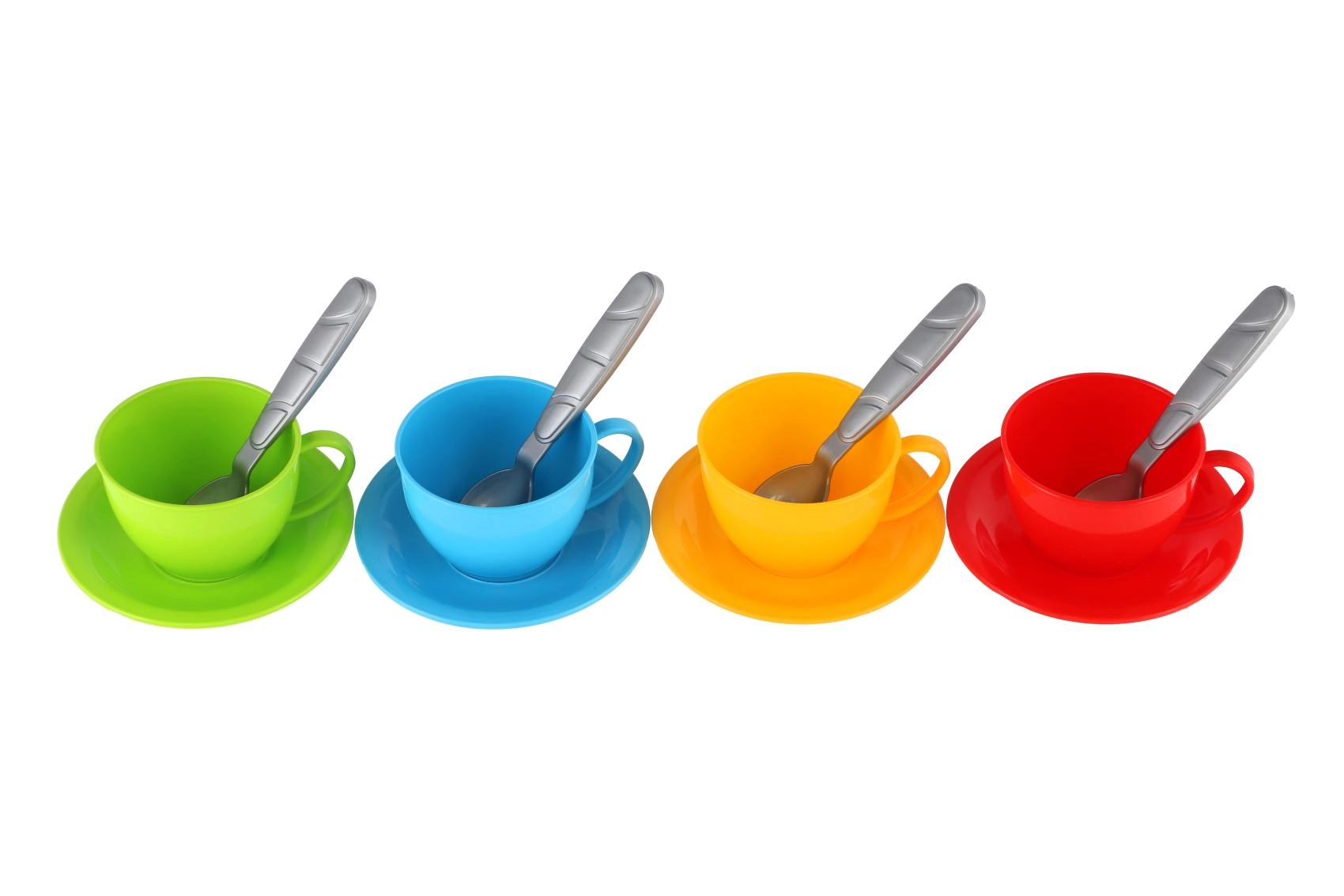 - Чаена кана, 4 чашки, 4 чинийки, 4 лъжички (цветна комбинация)