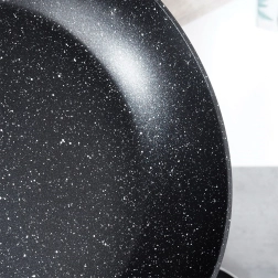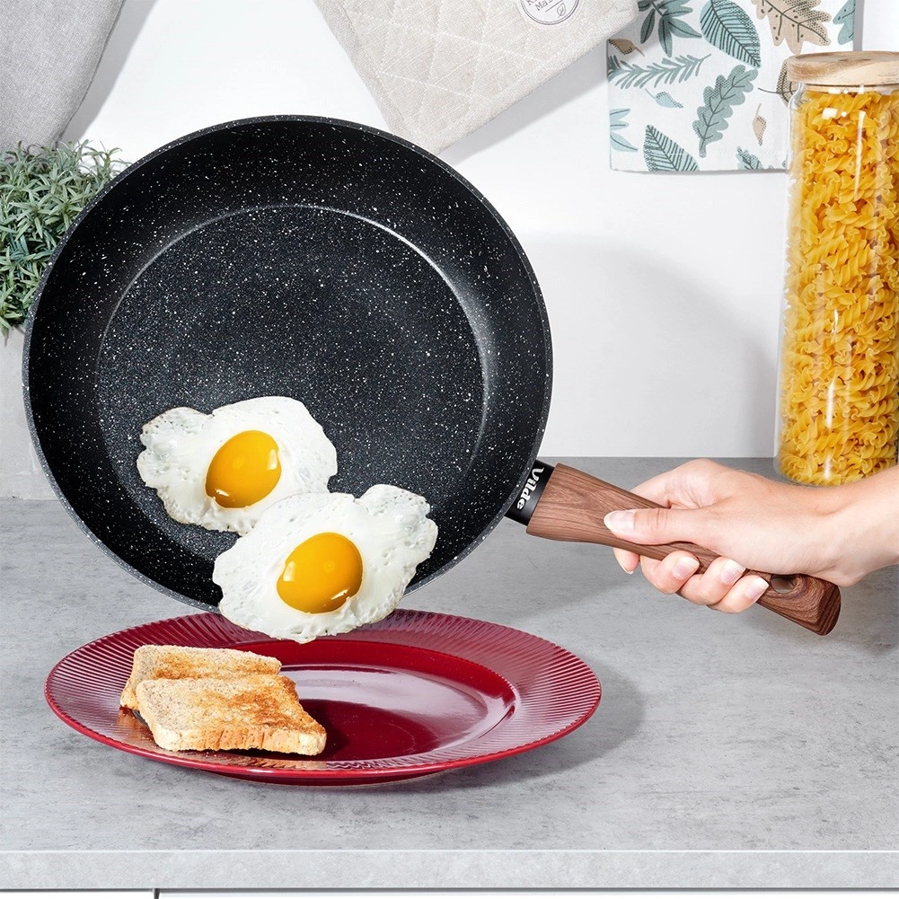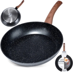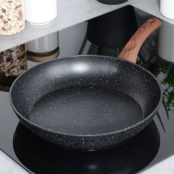 Стилен гранитен тиган с диаметър 28 см за всекидневно готвене. Благодарение на незалепващото каменно покритие, бързото и равномерно разпределение на топлината и ергономичната дръжка с имитация на дърво ще приготвяте здравословни ястия с минимум мазнина на всички видове котлони, включително индукционни.