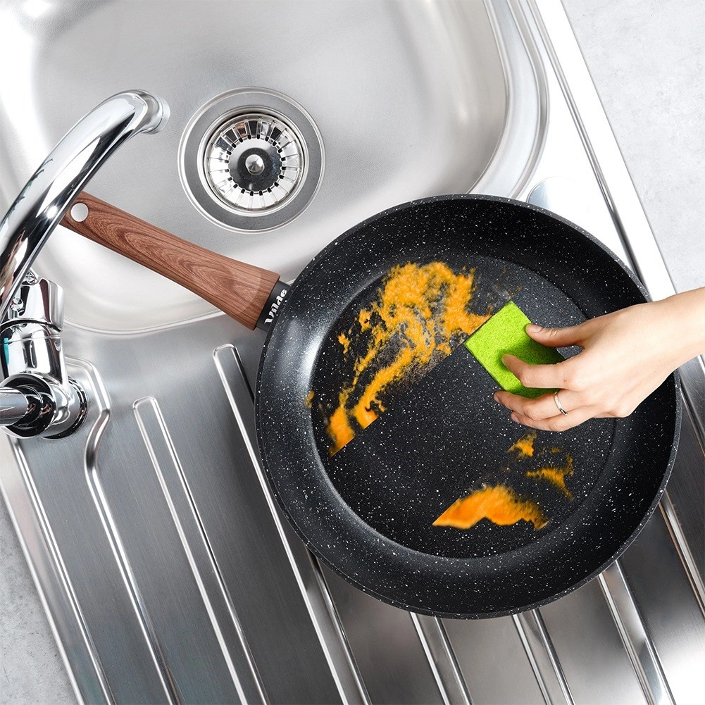 Здрав тиган от лят алуминий с издръжливо незалепващо гранитово покритие се отличава с отлична топлопроводимост и лесно почистване. Модерната комбинация от черно и дърво подхожда на всяка кухня и гарантира удобно готвене, пържене и задушаване.