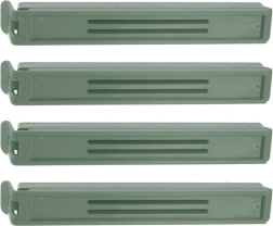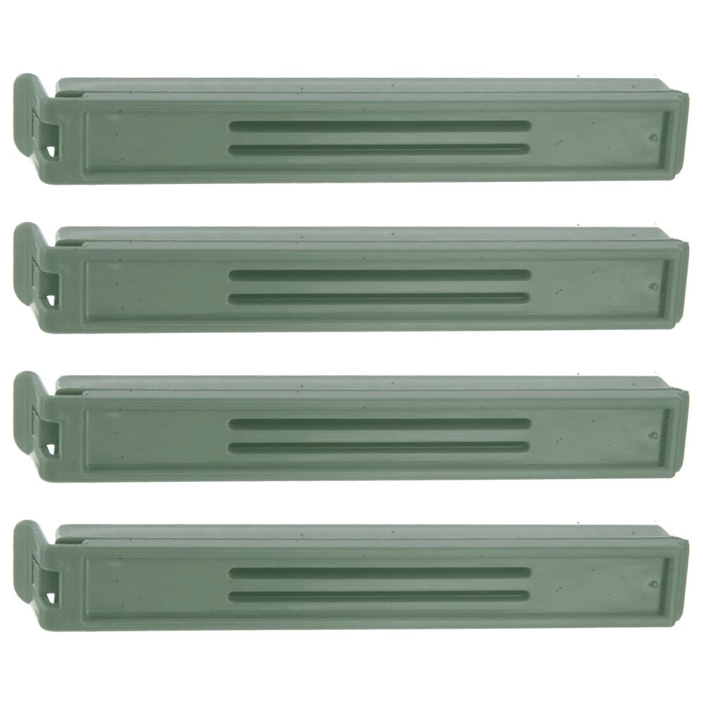 Комплект от 4 здрави щипки за пликове ще поддържа храната ви по-дълго прясна и сигурно затворена. Практичните зелени щипки с размери 11 × 1,5 cm лесно уплътняват пликове с кафе, подправки, паста или замразени храни и предотвратяват разсипване и достъп на въздух и влага.
