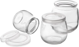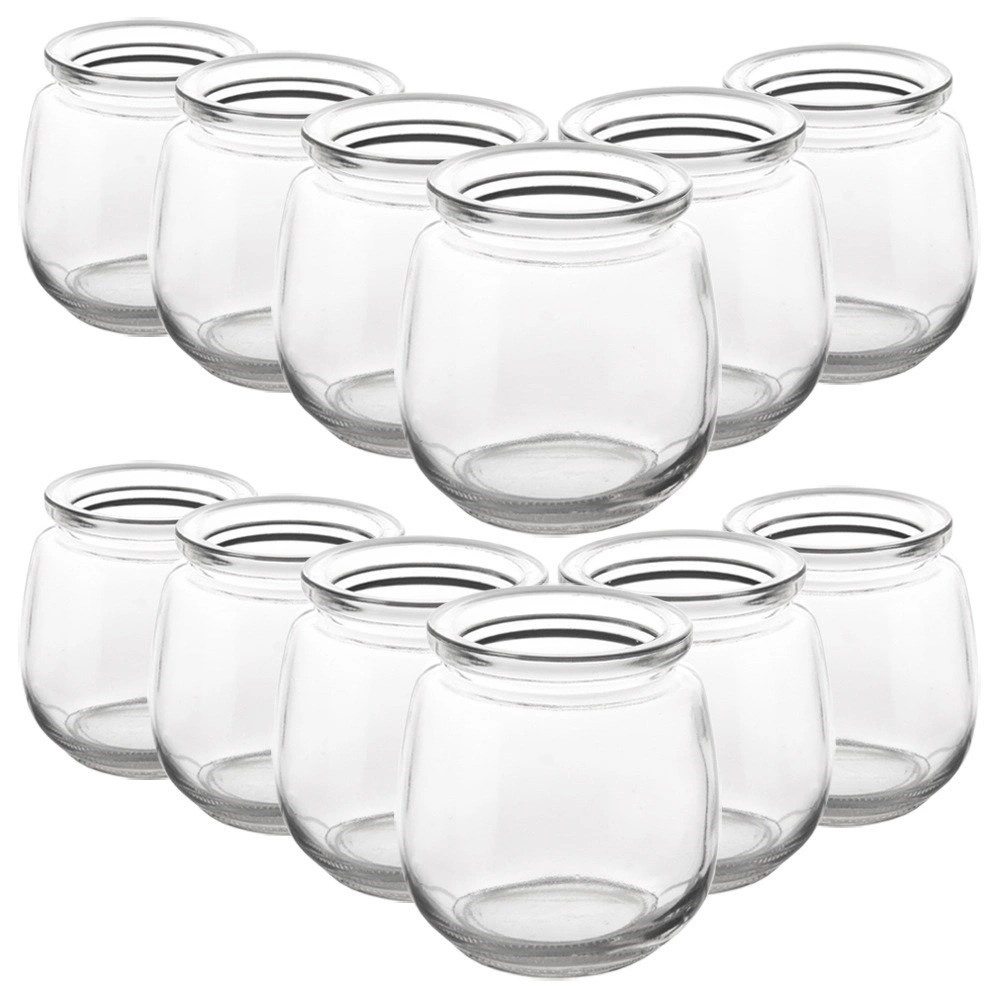Практичен комплект от 12 стъклени чашки с обем 130 мл, идеални за йогурти, десерти, сладка и подправки. Изработени от прозрачно, устойчиво стъкло за елегантно сервиране и лесен контрол на съдържанието. Подходящи за съдомиялна, хладилник и фризер (термоустойчивост до +80 °C).