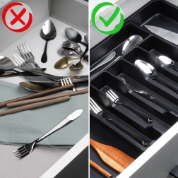 Добре обмислените, с различна ширина отделения разделят лъжиците, вилиците, ножовете и шпатулите, така че всичко да намирате бързо и да поддържате ред всеки ден.