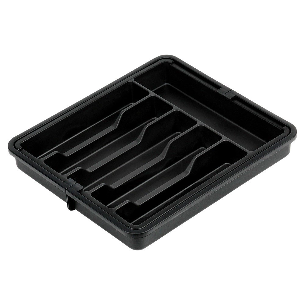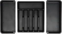 Органайзерът е изработен от здрава и издръжлива пластмаса с гладка повърхност за лесна поддръжка. Елегантният черен дизайн подхожда на модерни и класически кухни и помага да поддържате перфектен ред в ежедневната работа.