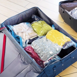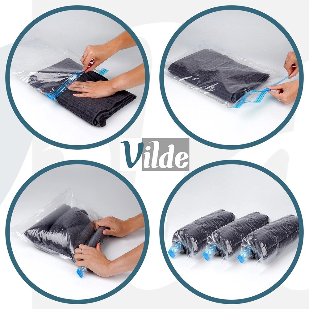 Вакуумните пликове намаляват обема на дрехите до 70%, така че в куфара и гардероба събирате повече и поддържате перфектен ред.