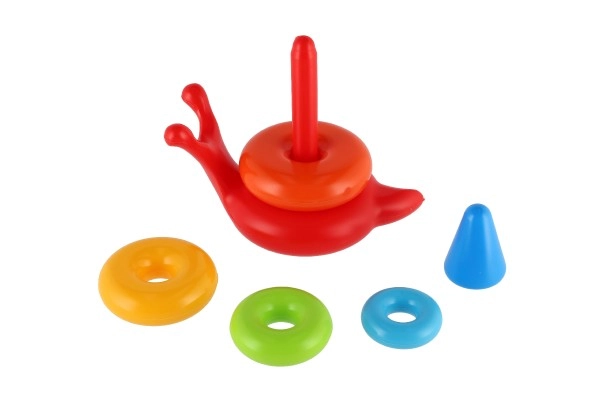 Играчката има основа във формата на охлюв с красиви ушички и усмивка, която носи радост и игривост в ежедневната игра.