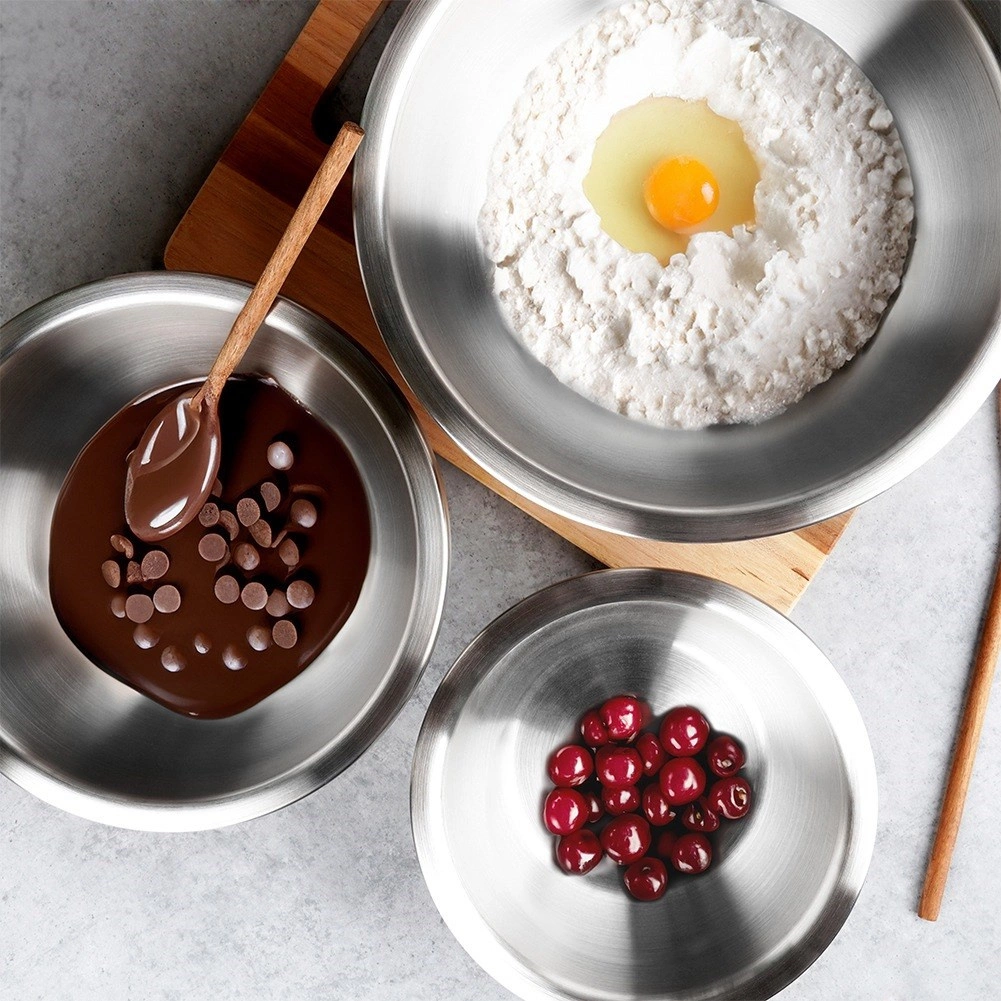 Практична неръждаема купа с диаметър 24 см и обем 2,8 л с матова повърхност, двустенна конструкция за по-добра топлоизолация и универсално приложение в домашната и професионалната кухня. Лека и устойчива, подходяща за съдомиялна, хладилник, фризер и фурна, идеална за разбъркване, разбиване и стилно сервиране.