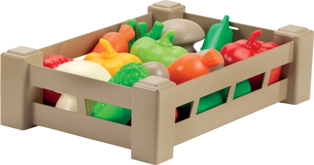 Тази реалистична пластмасова щайга е пълна с пъстри макети на плодове и зеленчуци, които стимулират детското въображение и помагат за развитието на фината моторика. Идеална за детски кухни, игрални кътове и детски градини.