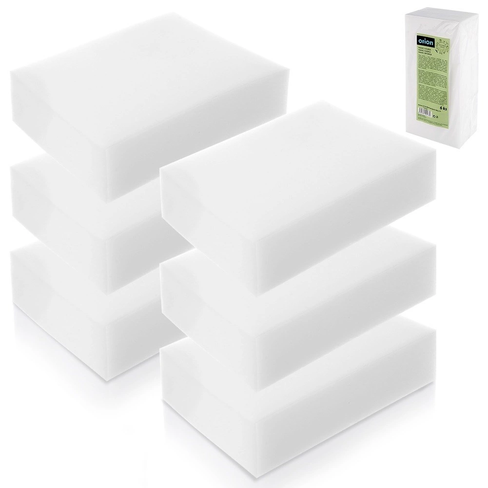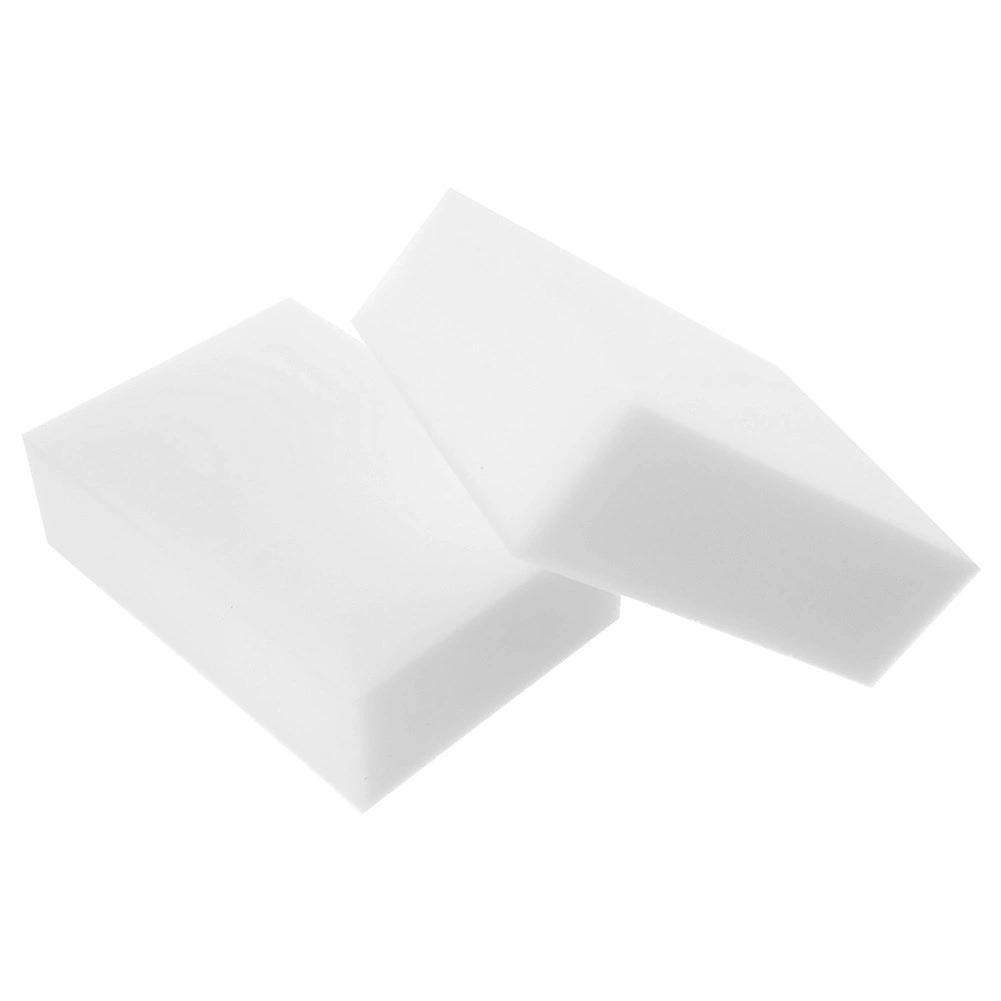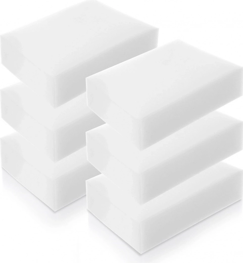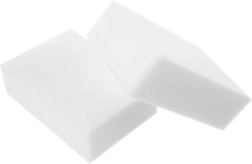 Многостранна употреба в дома: пластмаса (рамки, ключове), керамика (мивки, плочки), неръждаема стомана (мивки, уреди), стъкло и лакирани повърхности. Отлично работят и върху стени – премахват следи, следи от обувки и рисунки с пастели или маркери. Всяка гъба: 10 × 7 × 3 cm.