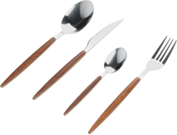 Този вечен комплект прибори придава на вашата маса класическа елегантност и модерен акцент. Лъскавите неръждаеми глави в комбинация с топлия дървесен декор на дръжките изпъкват прекрасно с всякакви класически и модерни сервизи.