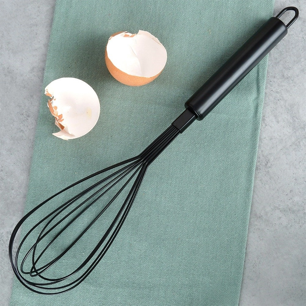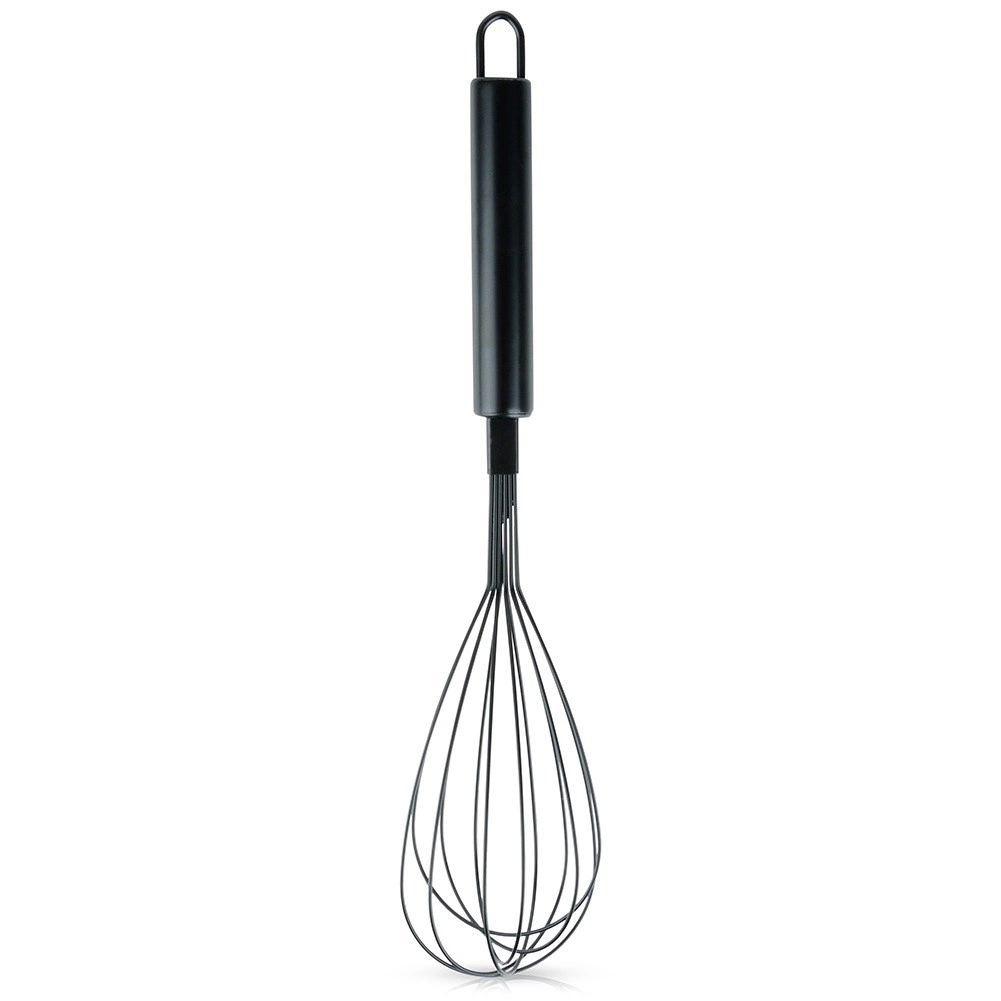Перфектна е за разбъркване на теста, приготвяне на маринати и деликатно сгъстяване на сосове. Ергономичната дръжка е удобна дори при по-дълга работа, а ухото за окачване улеснява съхранението. Черното покритие изглежда модерно и се поддържа лесно – бъркалката е подходяща за съдомиялна машина.