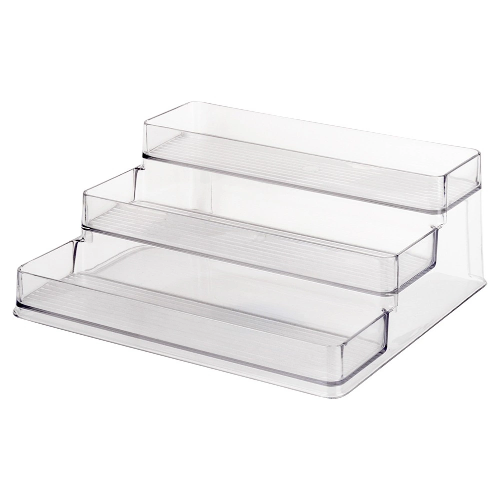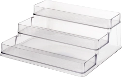 Този универсален триетажен органайзер-етажерка от прозрачен пластмаса веднага подобрява реда и видимостта в кухнята, банята или килера. Прозрачният материал позволява бързо да намерите нужната съставка или козметика, а стъпаловидната конструкция пести място и увеличава капацитета.