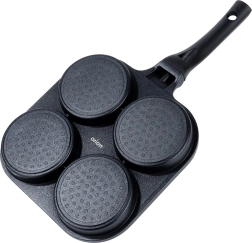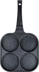 Практичен гранитен тиган с четири кръгли форми с диаметър 10 см за перфектно оформени яйца на очи, палачинки тип Американски и мини палачинки. Благодарение на незалепващото покритие PFLUON GRANIT приготвяте ястия с минимум мазнина, бързо и равномерно. Подходящ за газ, електрически, керамични, халогенни и индукционни котлони, лесен за почистване и подходящ за съдомиялна.