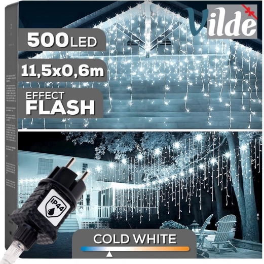 Стилна светлинна завеса с 500 енергийно ефективни LED ще създаде вълшебна празнична декорация на фасада, пергола или в интериора. Прозрачните проводници и различната дължина на висящите клончета (35, 40, 45 и 60 cm) създават реалистичен ефект на искрящи ледени висулки, а някои диоди нежно примигват за още по-впечатляващ вид.