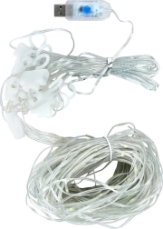 Дизайнерската светлинна завеса превръща всеки прозорец или стена във впечатляващ светлинен фон. Десет вертикално висящи жички с LED диоди създават ефект „водопад“, а студено бялата светлина придава чист и тържествен характер на пространството. Управлението е лесно – чрез USB захранване и включено дистанционно.