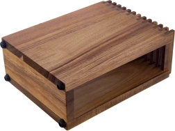 Тази премиум стойка от орехово дърво съчетава функционалност и естетика. Подрежда прегледно кухненските ви ножове, защитава остриетата им и в същото време ги държи винаги под ръка. Естественият кафяв оттенък на ореха придава топъл, елегантен акцент на кухнята.