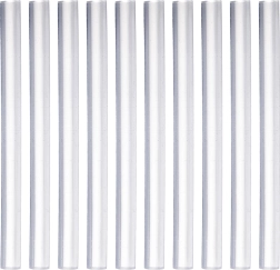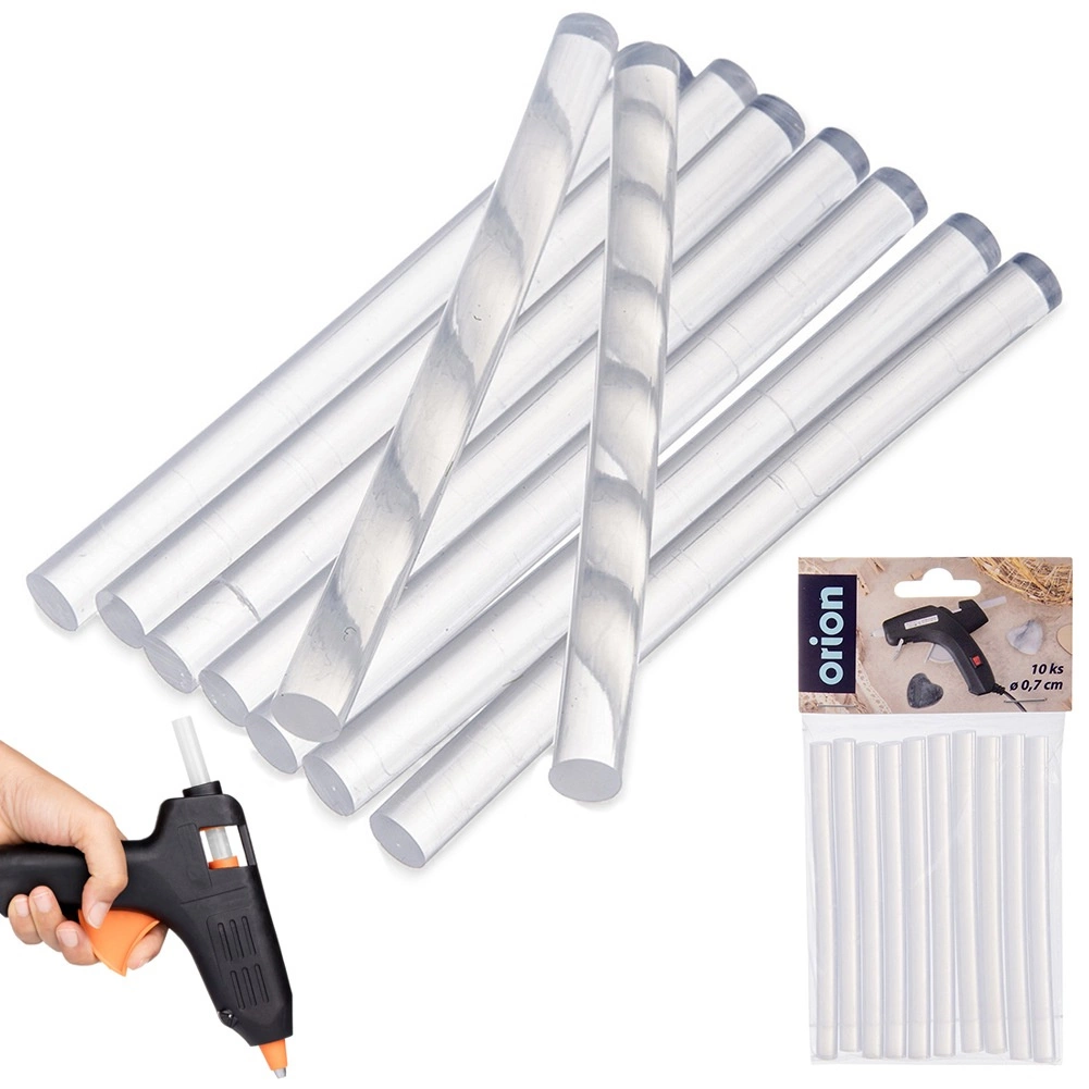 Универсални прозрачни термолепилни пръчки с диаметър 7 mm и дължина 10 cm за прецизно лепене у дома и при креативни проекти. В опаковката има 10 броя за по-дълга употреба. Осигуряват здраво свързване, чиста апликация и широко приложение върху хартия, дърво и текстил.