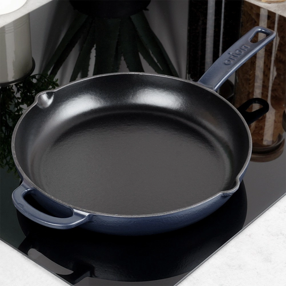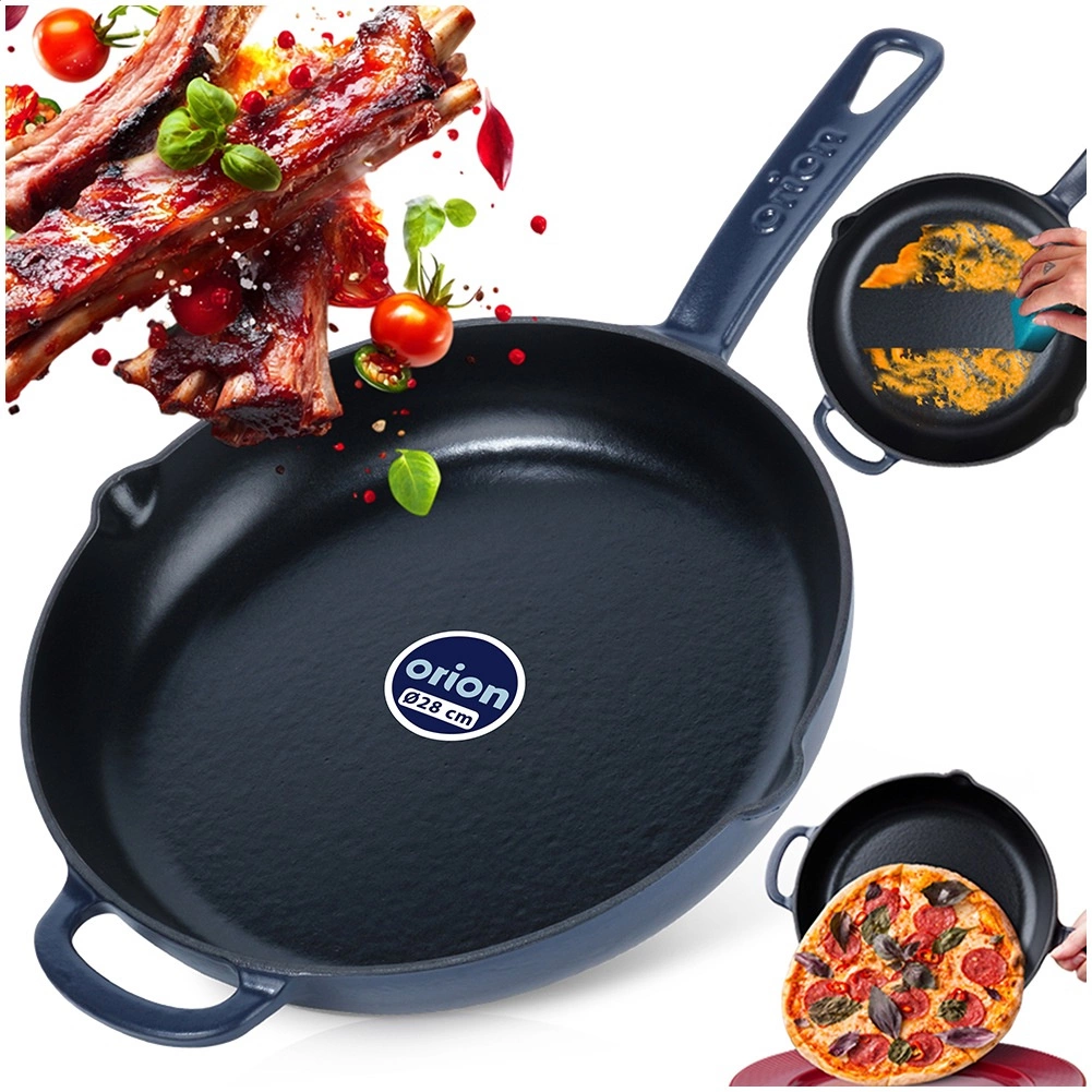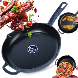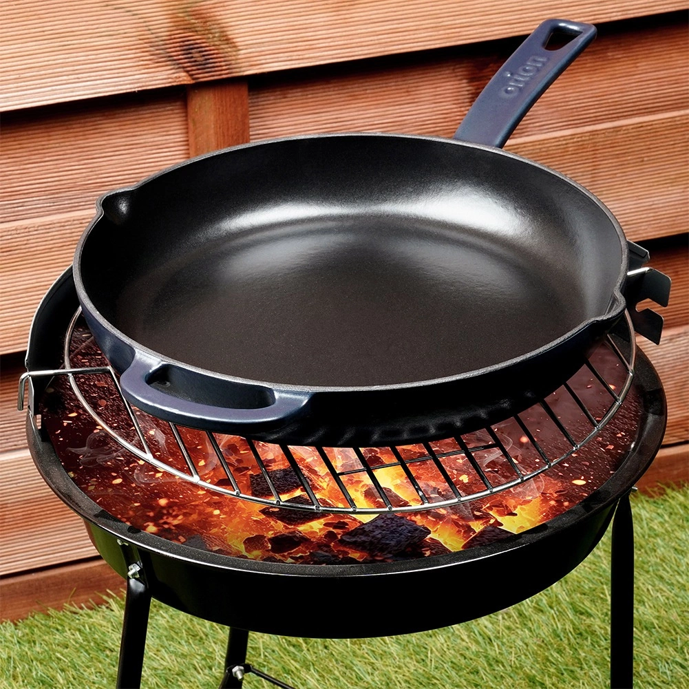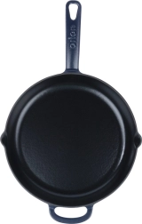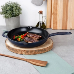 Този универсален чугунен тиган е отличен за пържене, сотиране, задушаване и печене. Здравата конструкция и емайлираната повърхност улесняват приготвянето на ястия и последващото почистване. Тиганът задържа високата температура дълго време, което е перфектно за стек, зеленчуци, картофи и пица. Подходящ за кухня, грил и открит огън.