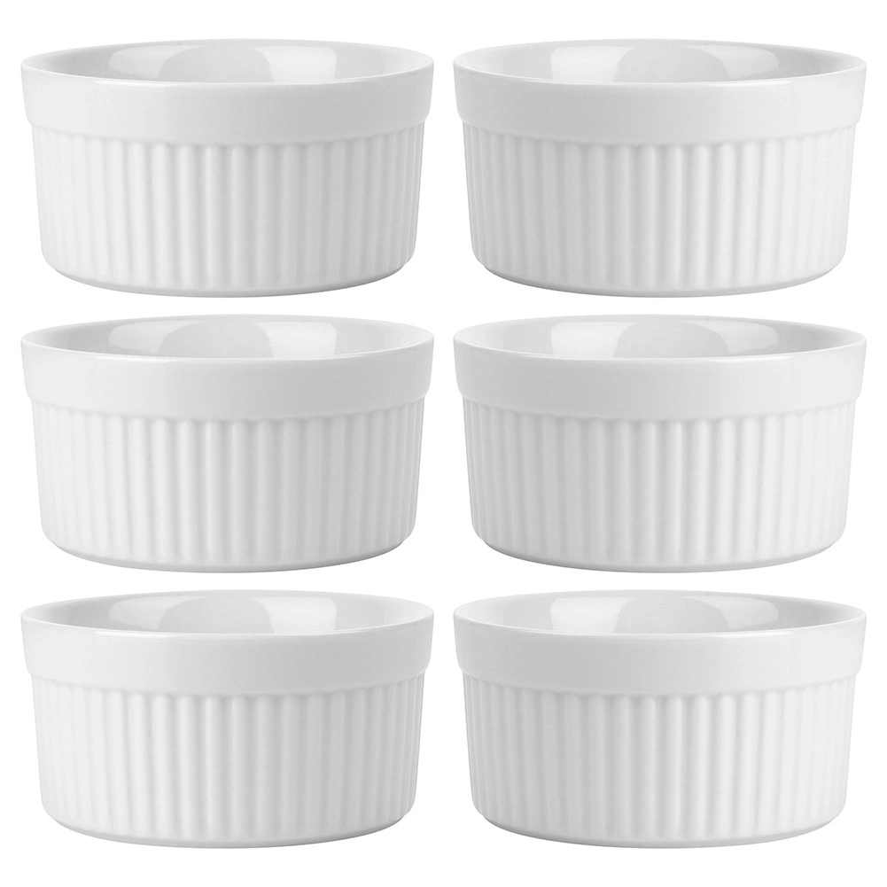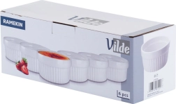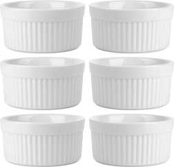 Практичен комплект от шест бели купички за запичане с обем 260 мл предлага елегантно решение за печене и сервиране. Купичките от качествена керамика са термоустойчиви до 350 °C, подходящи за фурна, микровълнова и съдомиялна. Благодарение на класическия оребрен дизайн и гладката глазура са идеални за крем брюле, сувле, малки запечени порции, сосове и снаксове.
